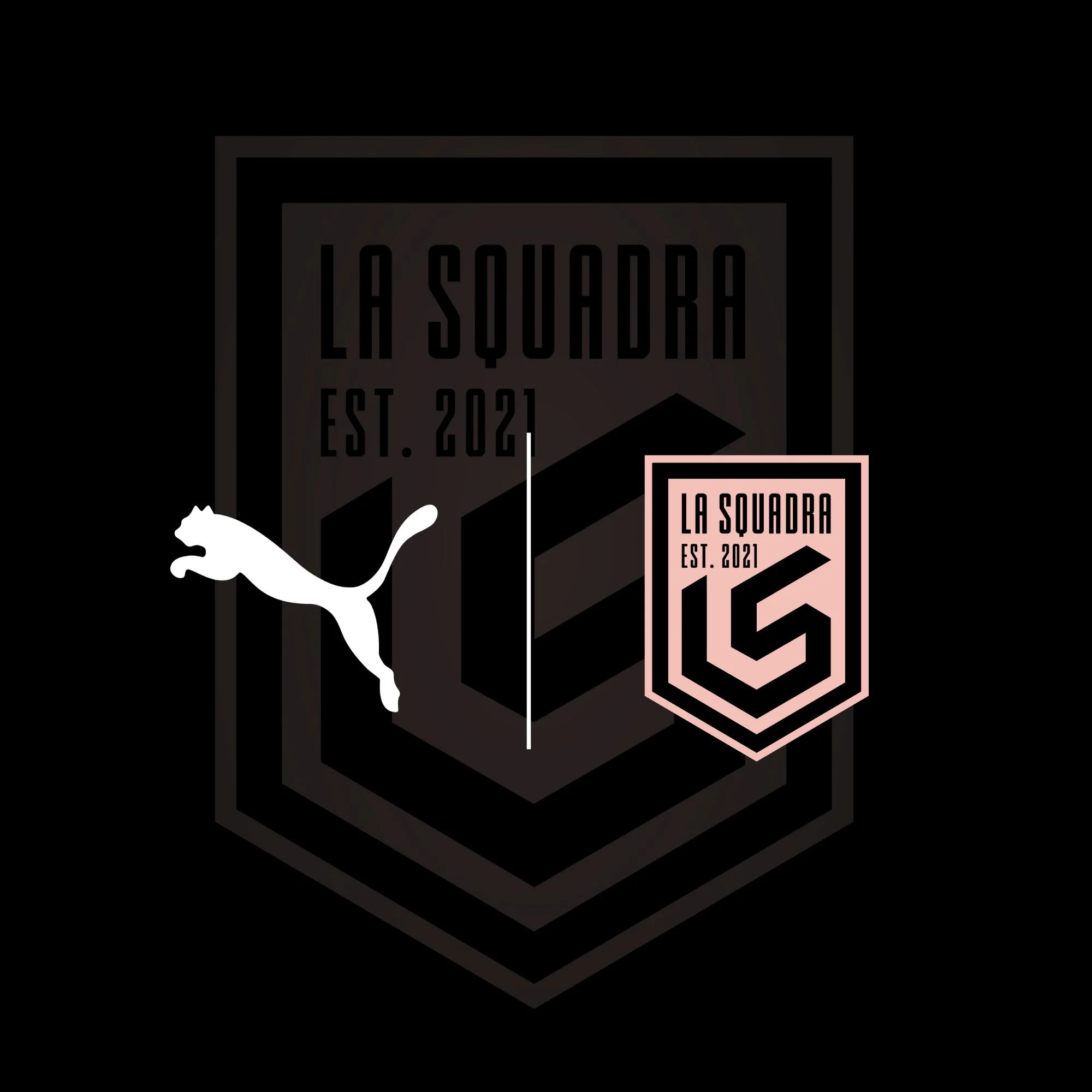 • La Squadra logo with Puma logo and text "Est. 2021" on a black background.